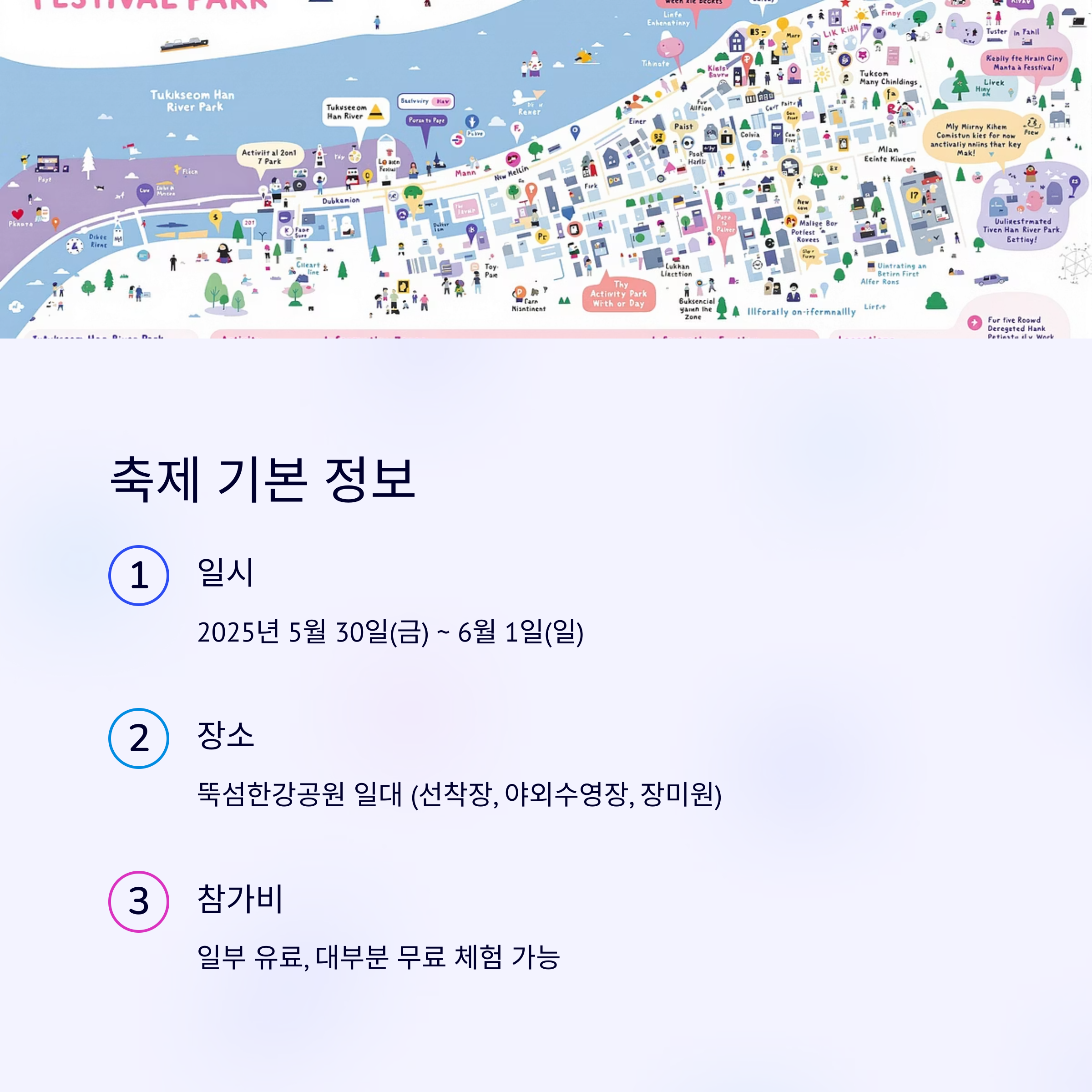 장소 뚝섬한강공원 일대 (한강버스 뚝섬선착장, 야외수영장, 장미원 등)