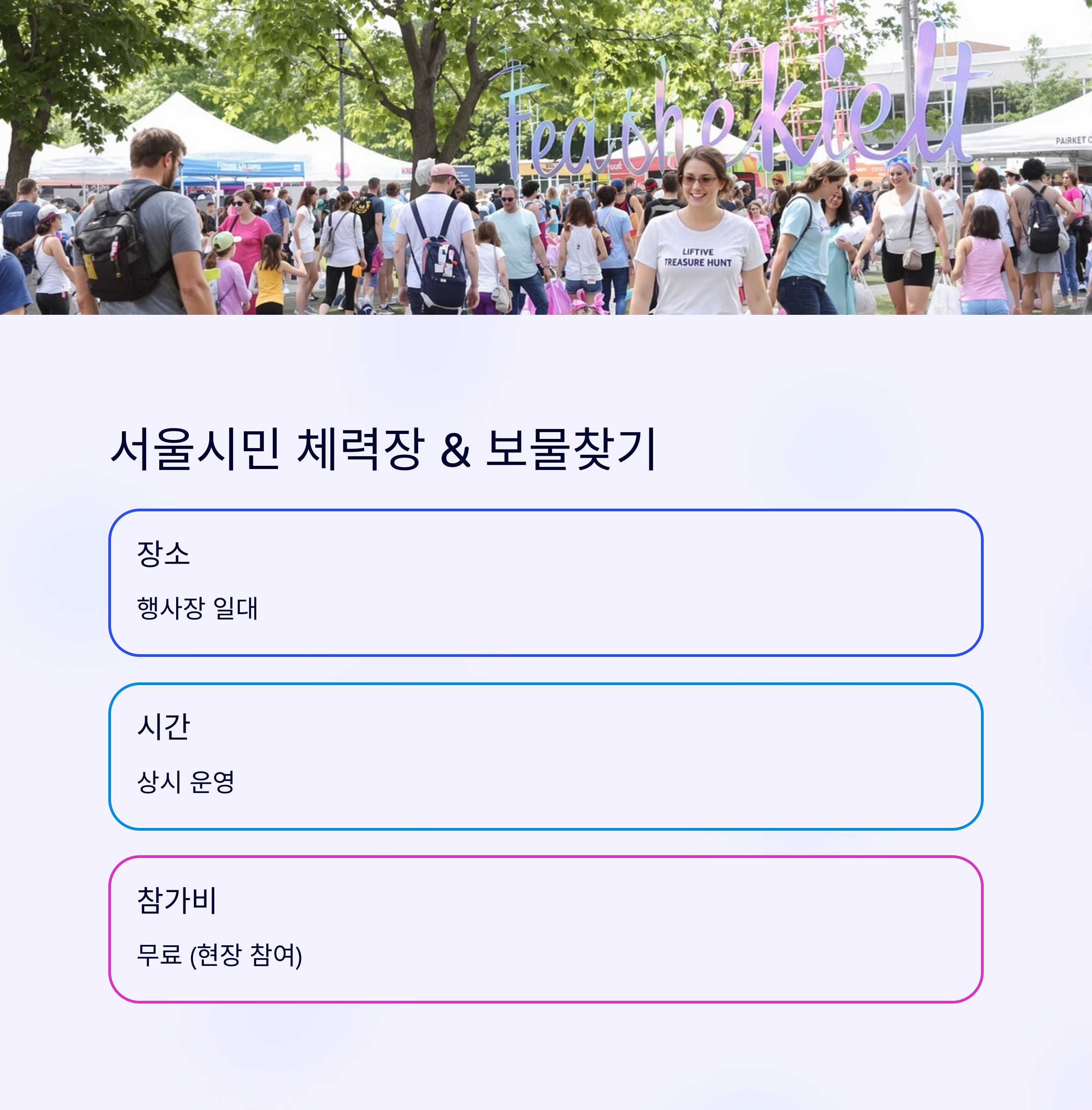 서울시민 체력장 & 보물찾기 행사장 일대 상시 선착순 무료 현장 참여