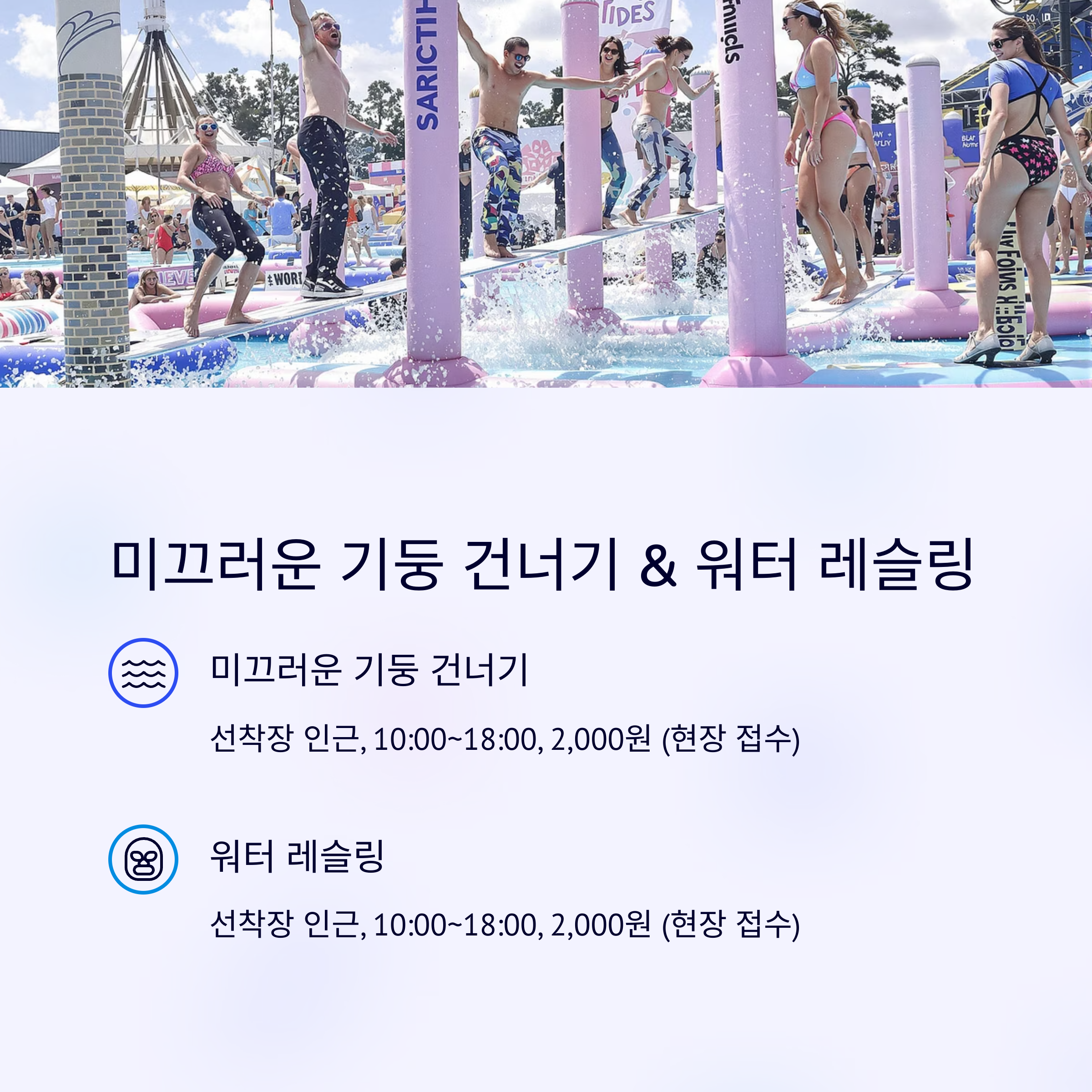 워터 레슬링 선착장 인근 10:00~18:00 (50분) 회당 20명 2,000원 현장 접수